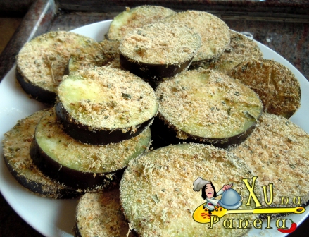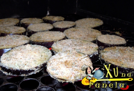 Misture com farinha de rosca e orégano à gosto. Empane cada fatia de berinjela com a farinha.