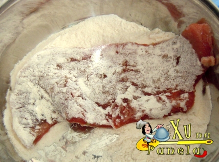 Passe cada bife na farinha de trigo.