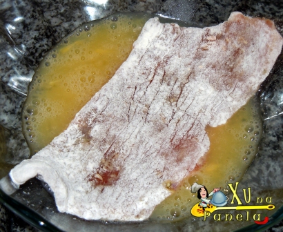 Em seguida passe a carne no ovo batido com uma pitada de sal.