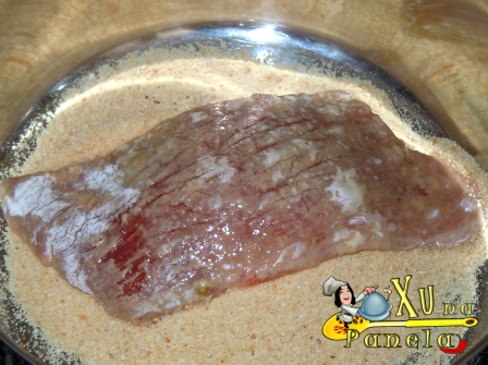 Por fim, envolva os bifes com farinha de rosca.