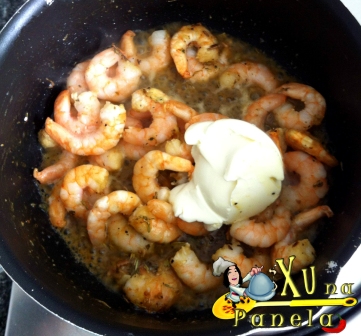 Refoque por 5 minutos até o camarão ficar rosado.