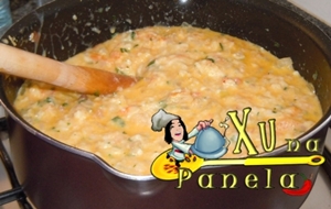 Modo de Preparo: Deixe o pão de forma embebido no leite até virar uma “papa”. pao de forma no leite papa de pão e leite Corte os tomates em cubos bem pequenos. tomates finamente picados Refogue a cebola na azeite de oliva juntamente com o azeite de dendê até dourar. cebola refogada no dendê Junte os tomates e deixe em fogo baixo até desmanchar e tornar-se um molho. adicionando tomates molho de tomate Junte a carne de siri e cozinhe por cerca de 10 minutos. colocando o siri cozinhando o siri Coloque o leite com o pão de forma, tempere com sal, coentro, pimenta do reino, cheiro verde e o queijo ralado. adicionanda leite e pão ao siri cheiro verde na casquinha de siri queijo ralado no siri misturando todos os ingredientes Junte a farinha de rosca aos poucos, mexendo sempre, misture bem e desligue o fogo. adicionando farinha de rosca Disponha tudo em uma travessa ou em conchas individuais. casquinha de siri na travessa Polvilhe com farinha de rosca e queijo ralado. polvilhando com farinha de rosca e queijo ralado Leve ao forno alto até dourar. casquinha de siri pronta na travessa Se desejar, sirva com arroz. siri e arroz Abaixo a foto de uma das primeiras vezes que eu fiz casquinha de siri. Coloquei em conchas pra ficar chique! casquinha de siri na concha
