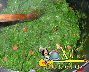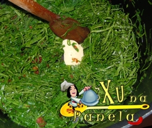 Mexendo sempre, deixe refogar até que a couve fique bem cozida. Dica: se deixada por pouco tempo no fogo, a couve fica amarga…