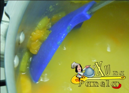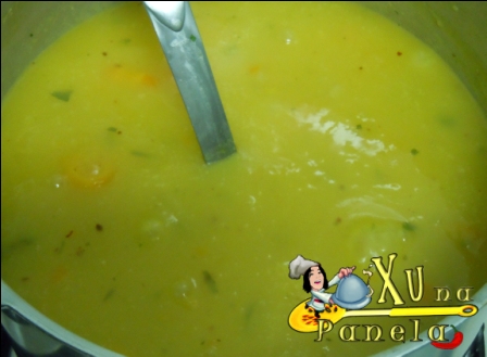 Com auxílio de um garfo ou colher, amasse os pedaços que não se desfizeram contra a parede da panela. Se um ou outro pedaço passar batido, não tem importância.