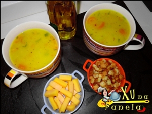 – 1,5kg de mandioquinha – 300g de cenoura – sal e pimenta do reino a gosto – 2l de água – 2-3 colheres (sopa) de margarina/manteiga – cheiro verde a gosto – sal a gosto – pimenta calabresa seca (se quiser) Modo de praparo: Descasque e lave as mandioquinhas e as cenouras.