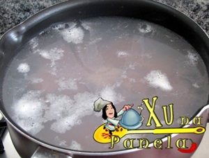 Cubra os cubos de carne com água e leve ao fogo até ferver. A água ficará branca.