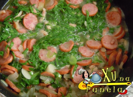 Adicione a couve e uma colher (sopa) de água.