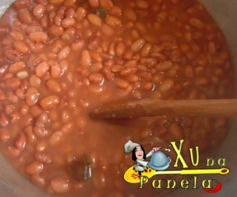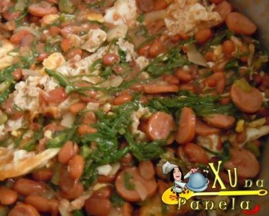 Primeiro, o feijão que utilizei foi o feijão carioca (aquele marronzinho, bastante consumido aqui no estado de São Paulo. Geralmente, utiliza-se o feijão roxinho) e ao invés de fazer a couve como acompanhamento, ela foi introduzida diretamente no prato.