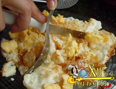 Frite os ovos deixando a gema dura.