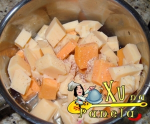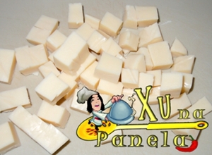 Corte os queijos em cubos (quanto menor o tamanho, mais fácil será para o derretimento).