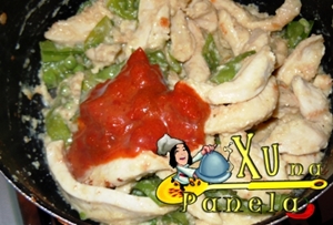Por fim, adicione o molho de tomate, deixe no fogo por mais três a cinco minutos.