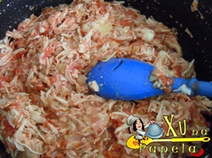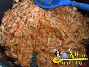Deixe cozinhar em fogo baixo por, pelo menos, 45 minutos, mexendo às vezes para não queimar. Se ficar com muito caldo, deixe no fogo até secar. Se estiver muito seco acrescente um pouco de água e deixe cozinhar mais 2 ou 3 minutos.