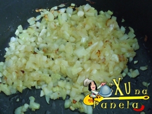 Refogue a cebola em uma colher de azeite até que doure.