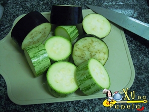 Primeiramente, lave bem os vegetais. Corte as berinjelas e a abobrinha em rodelas bastante grossas, cerca de 2-3 dedos de espessura.