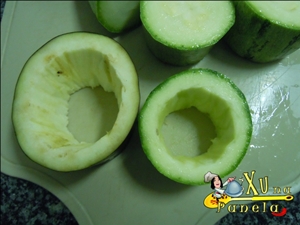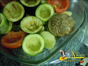 Preencha todos os legumes com o recheio uniformemente, pressionando levemente sem deixar extravazar.