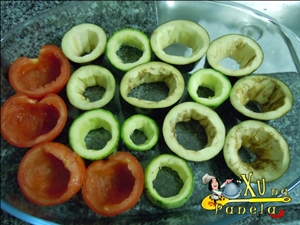 Para o recheio, toda aquela polpa retirada dos vegetais será utilizada.