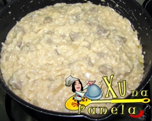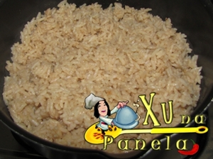 Cozinhe o arroz até ficar quase seco. Não precisa ficar soltinho.