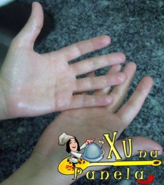 Agora é que é a hora importante. Sovar a massa para chegar ao ponto de pão. Unte suas mãos com óleo para não grudar na massa.