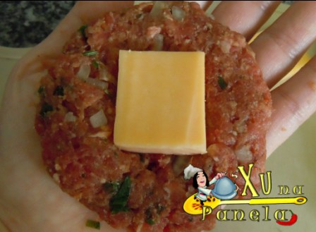 Coloque um pedaço de quejo cortado em cubo no centro.