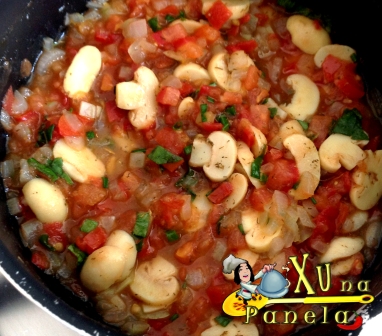 Desligue o fogo, junte o champinhom, o dill, a cebolinha, o manjericão e o suco do limão. Misture e reserve.