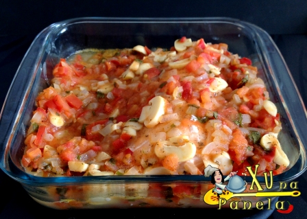 Cubra com uma folha de papel alumínio e leve ao forno alto por 15 a 20 minutos.