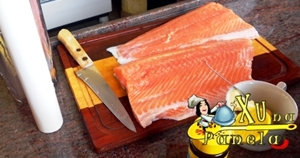 Retire  todas as espinhas do Salmão. Passando a mão por cima do filé perceberá onde estão.