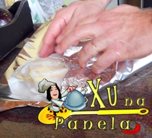 Depois de bem “lambuzado“, embrulhe no papel manteiga. Feche bem. O papel manteiga é essencial para que o peixe não grude no papel alumínio.