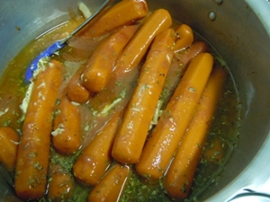 Em seguida, adicione o restante dos ingredientes. Se desejar, pode cortar as salsichas ao meio (para lanchinhos em festinha de criança, por exemplo, é ótimo… ou pra render mesmo).