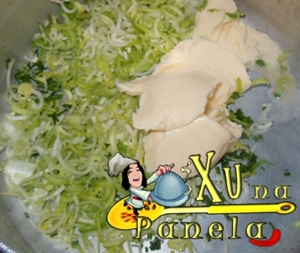 Corte em finas rodelas o alho poró e a cebolinha e frite na manteiga.