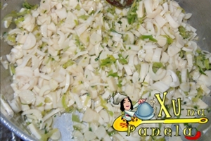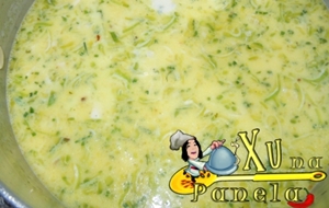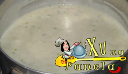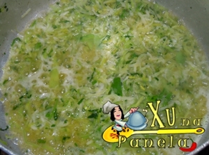 Acrescente a água, e o amido de milho dissolvido no leite. Tempere com sal e pimenta do reino.