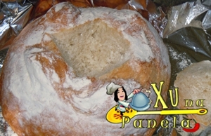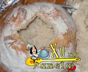 Retire parte do miolo com as mãos e pressione bem as paredes de dentro contra a casca do pão.
