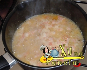 Acrescente os temperos, o leite e o molho de tomate ou catchup (só pra dar uma corzinha) e mexa bem. Prove o sal e corrija, se necessário. Reserve.