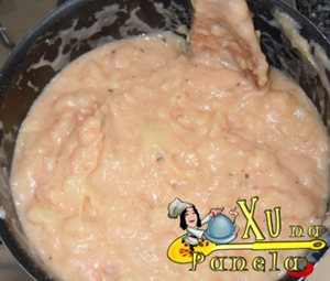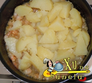 Acrescente as batatas e mexa bem, para elas desmancharem.