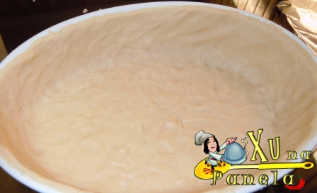 Para fechar a torta, estenda a massa restante num papel alumínio ou papel filme para colocar por cima. O manuseio fica mais fácil.