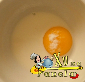Em uma vasilha, coloque a gema, o leite e uma pitada de sal.