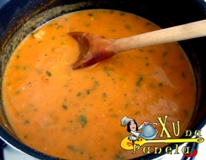 Junte o coentro (pra quem gosta) e cheiro verde a gosto.